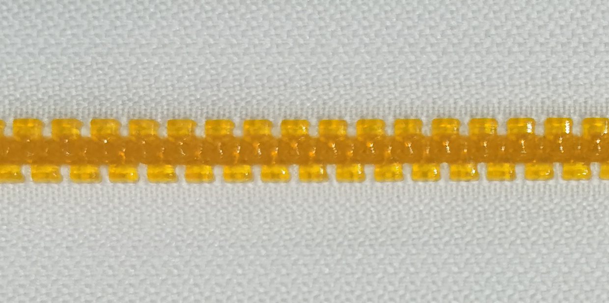 1. 此拉鏈選用透明牙專(zhuān)用塑料注塑成型。