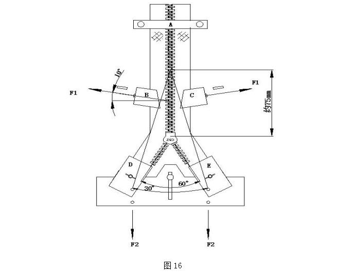22.2.2.5、松開(kāi) A 固定點(diǎn),將拉鏈尾端向上拉起使得固定銷(xiāo)落于平衡板孔中間,然后將 A 點(diǎn)夾緊(此時(shí)目測 D、E 點(diǎn)在同一水平線(xiàn)上)。