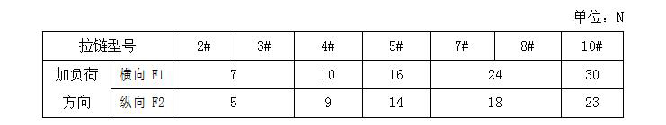 22.3、拉鏈橫向和縱向加負荷表:
