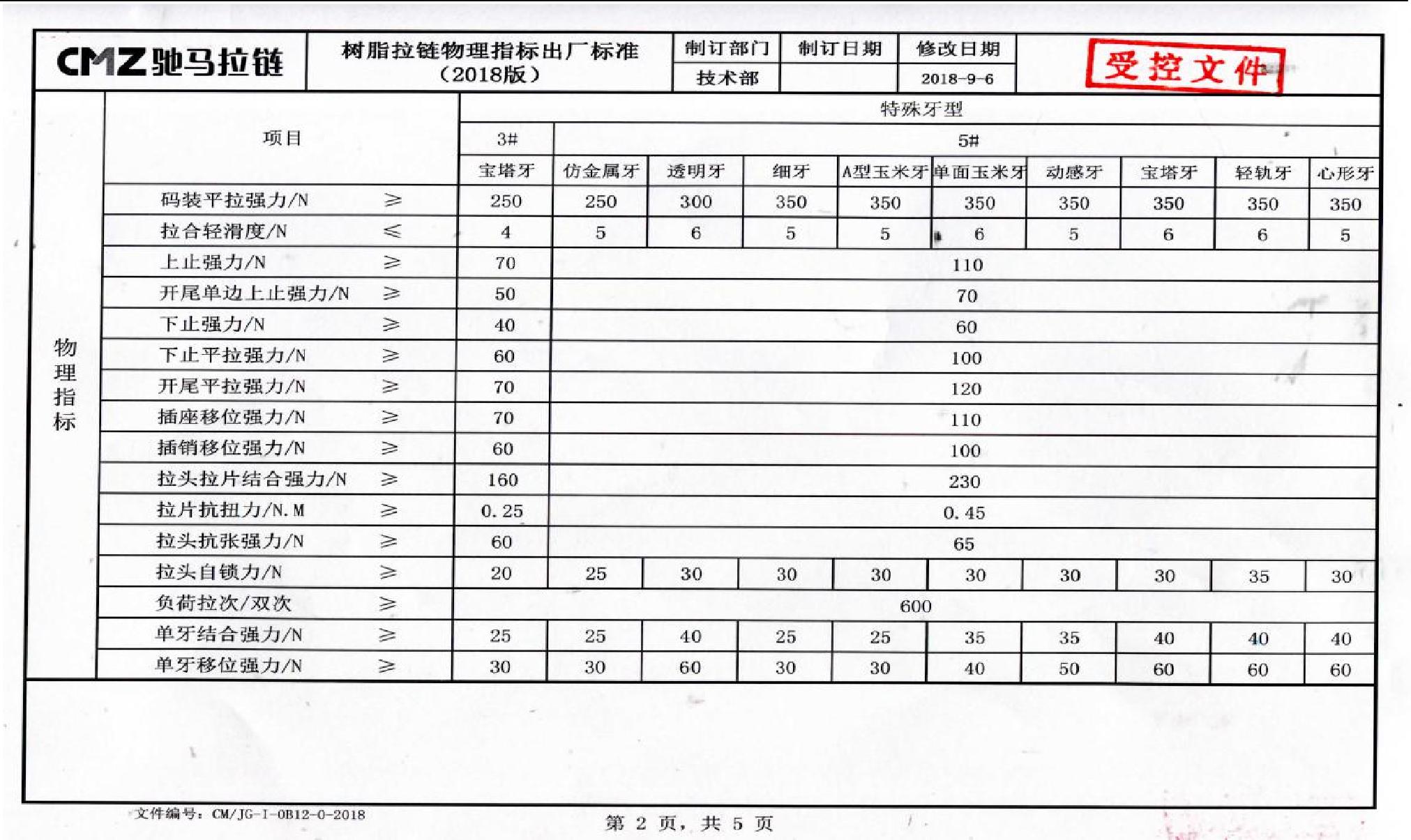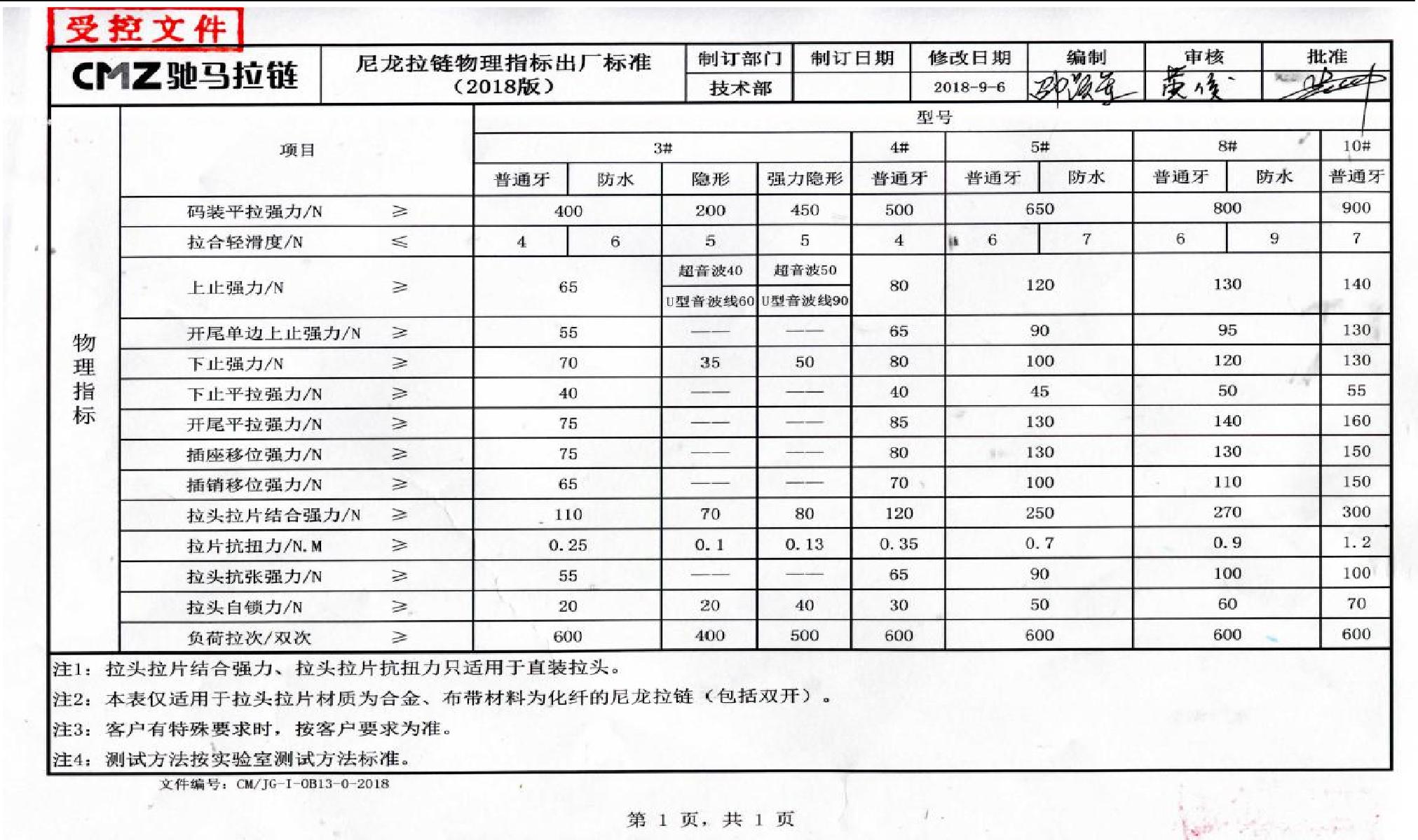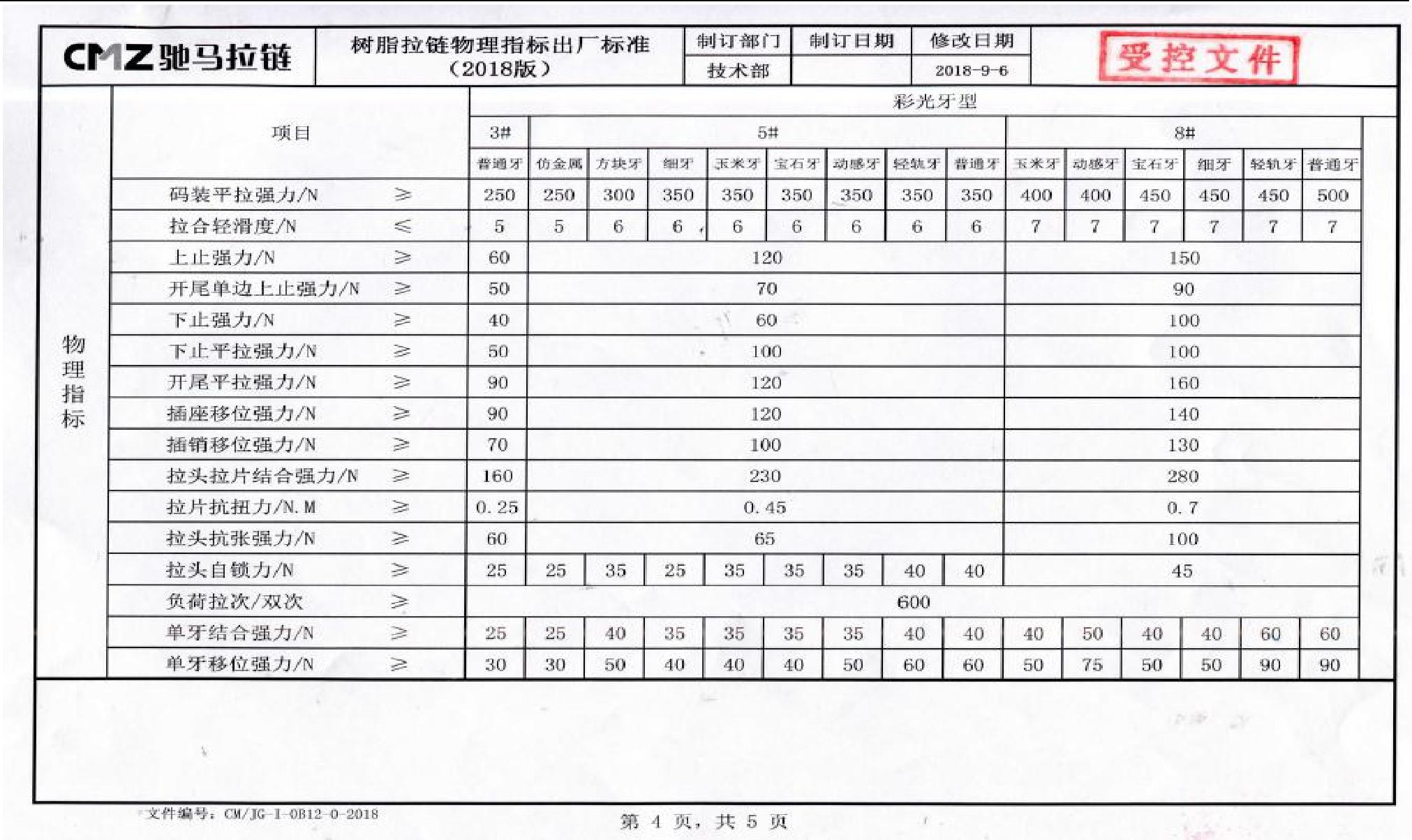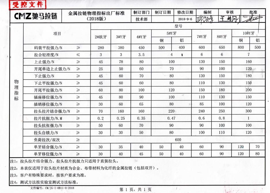 二十四、拉鏈物理指標出廠(chǎng)標準