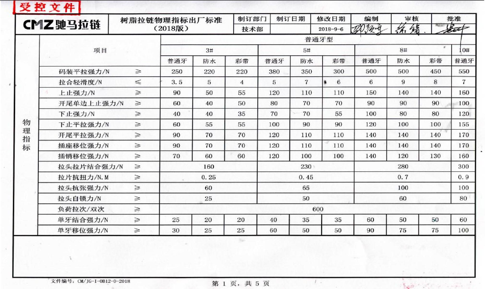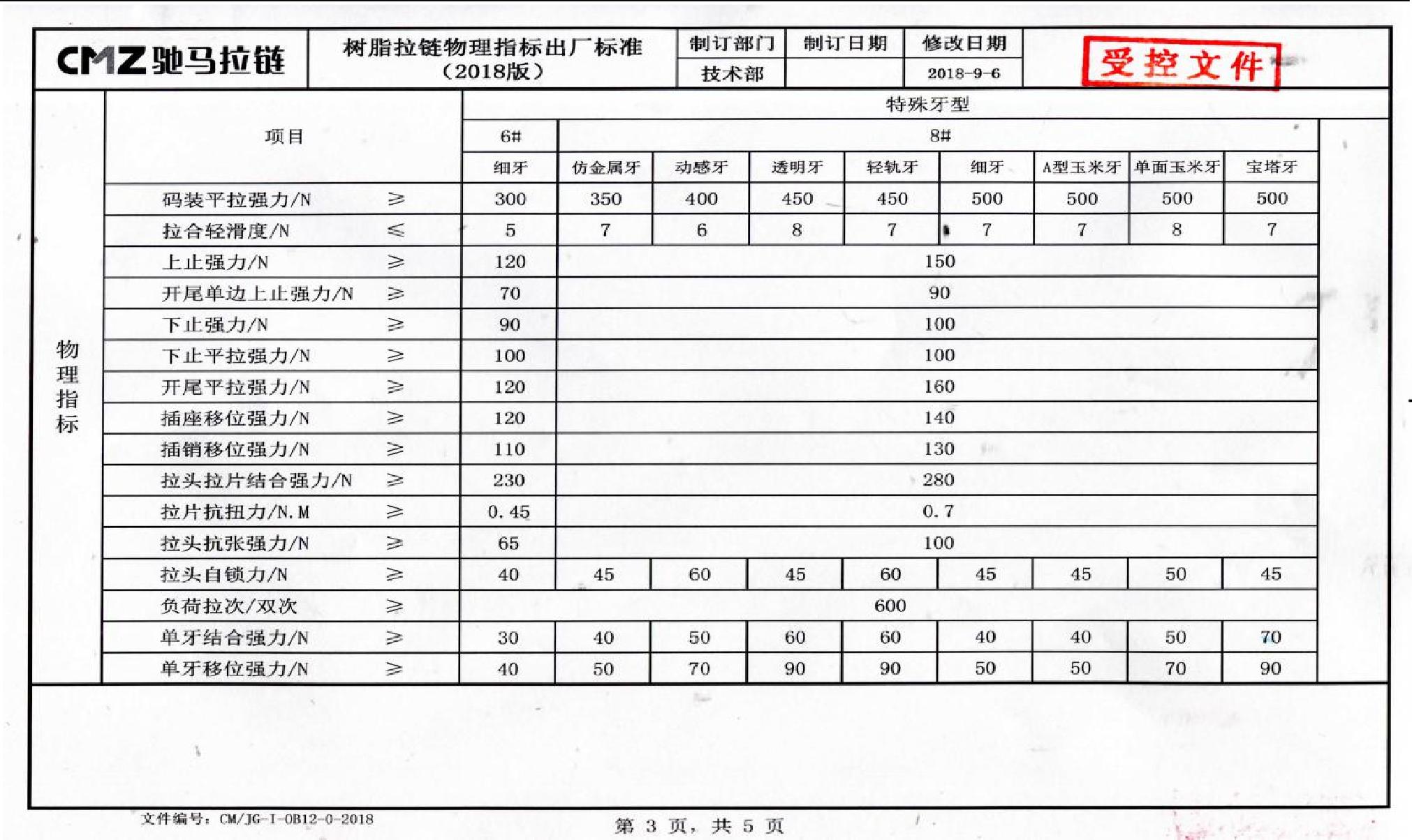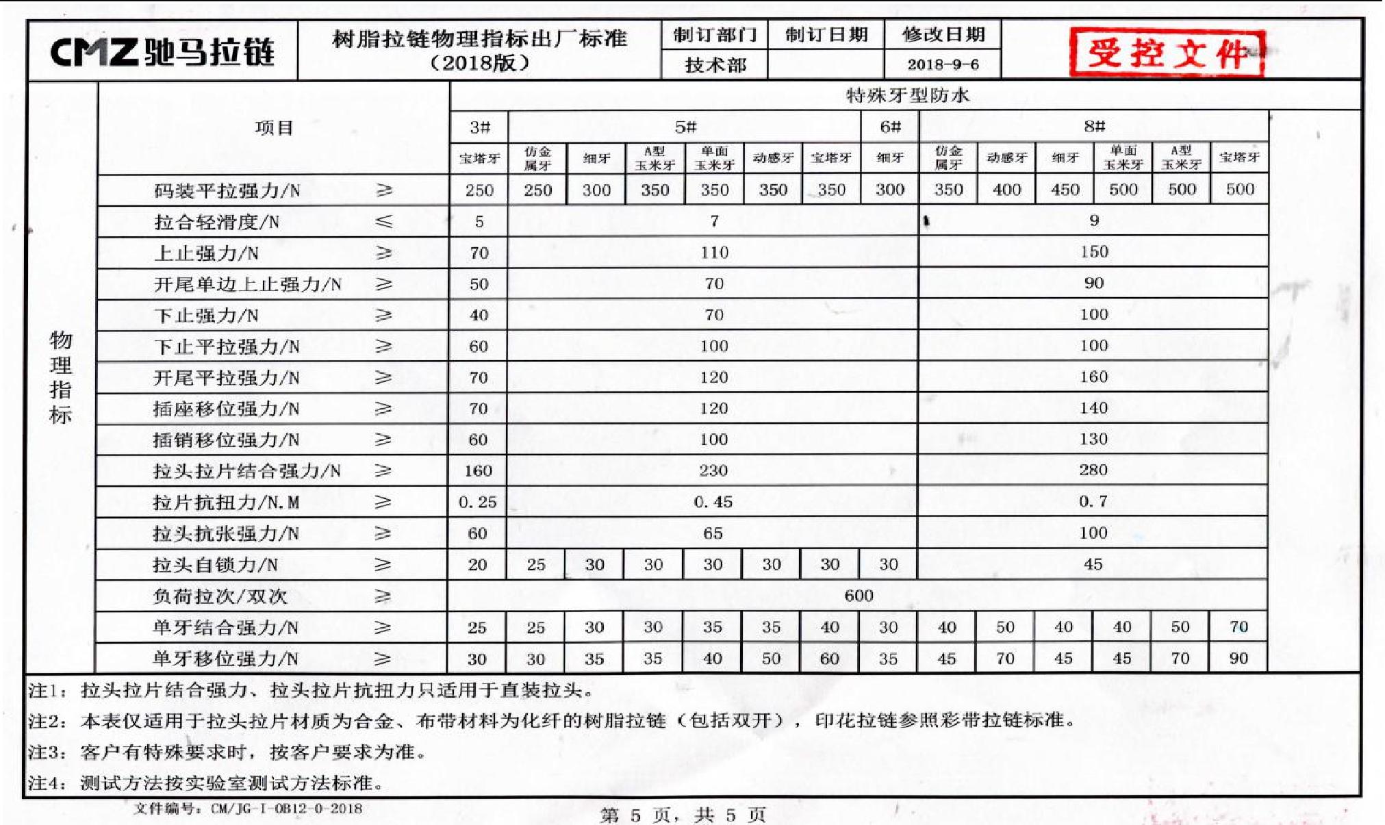 二十四、拉鏈物理指標出廠(chǎng)標準